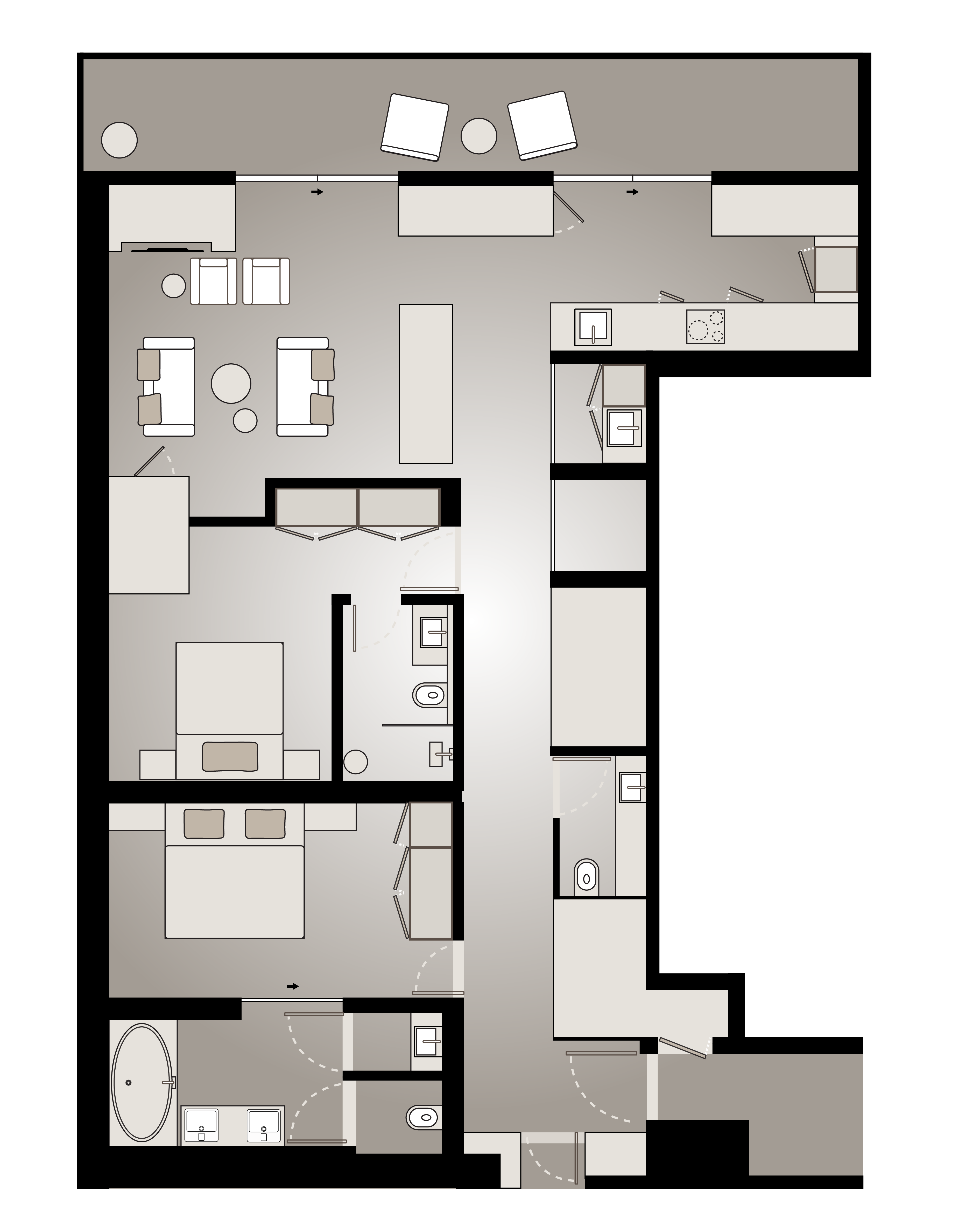 A spacious Family Suite with a dedicated kids’ room featuring a bunk bed, modern bedrooms, and a fully equipped kitchen and laundry area — perfect for a cozy family stay.