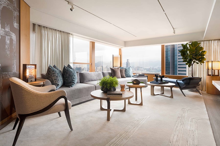 His sole namesake suite in the world, this secluded escape was lovingly designed by André Fu, with generous dining space, spa area, and large living room for relaxing and hosting.