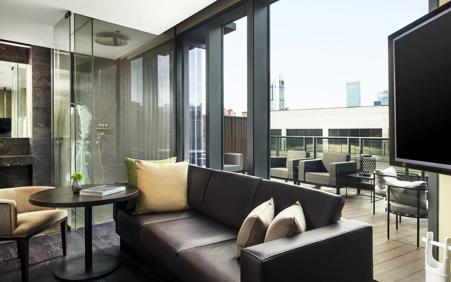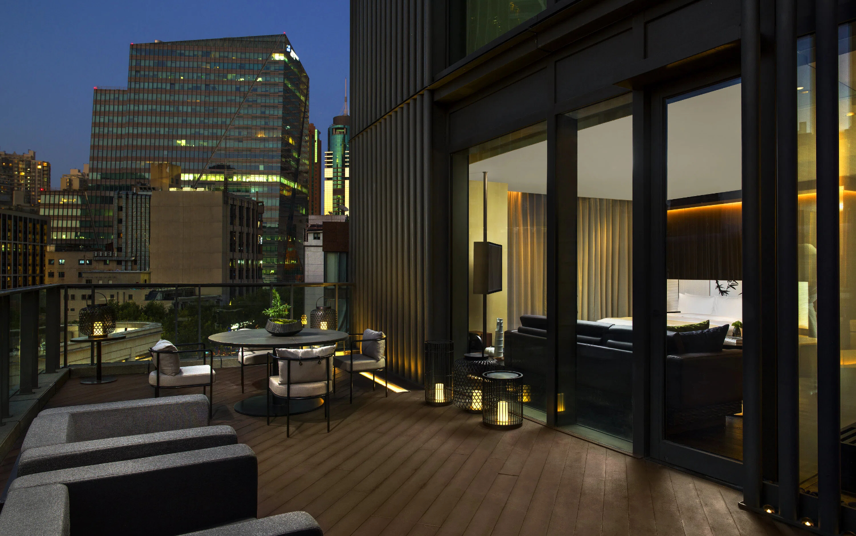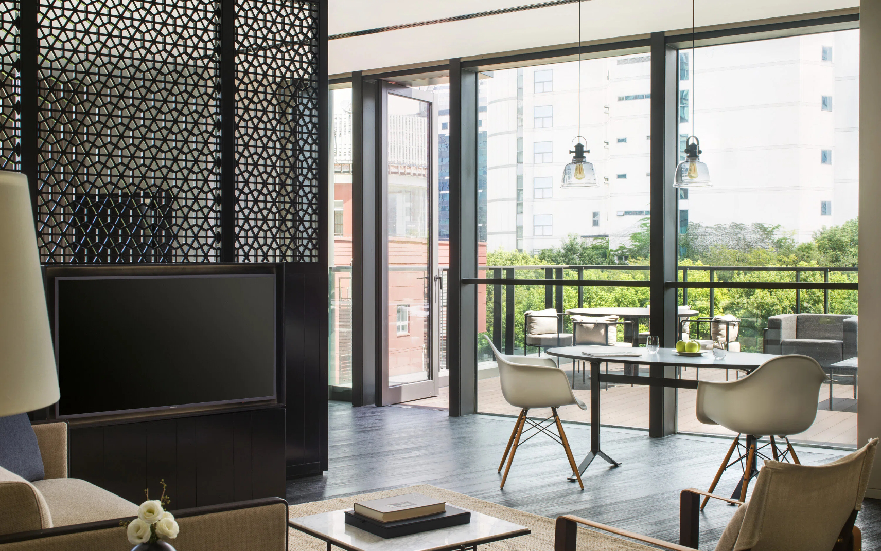 Unwind in Studio 60 with Terrace's calm and contemplative vibe. Floor-to-ceiling windows, sleek European furniture with Shanghainese accents and a lush spa-like bathroom set the scene.