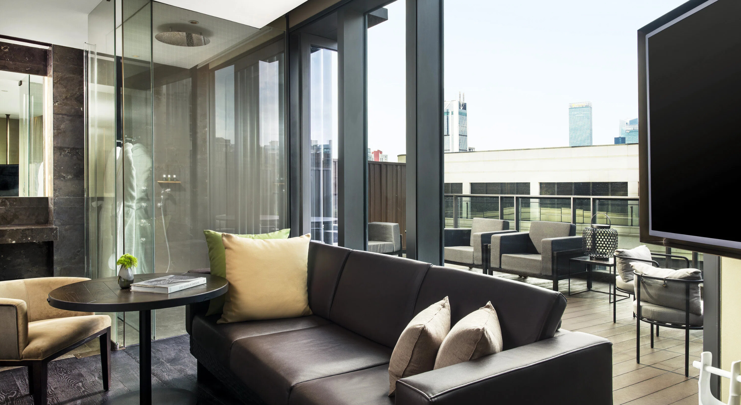 透过露台60平米开间的落地大玻璃窗格将上海醉人景色尽收眼底,白天阳光充沛,入夜五光十色。当你深陷入丝滑的特大双人床,或深浸在泡泡浴里时,将倍感温馨惬意。