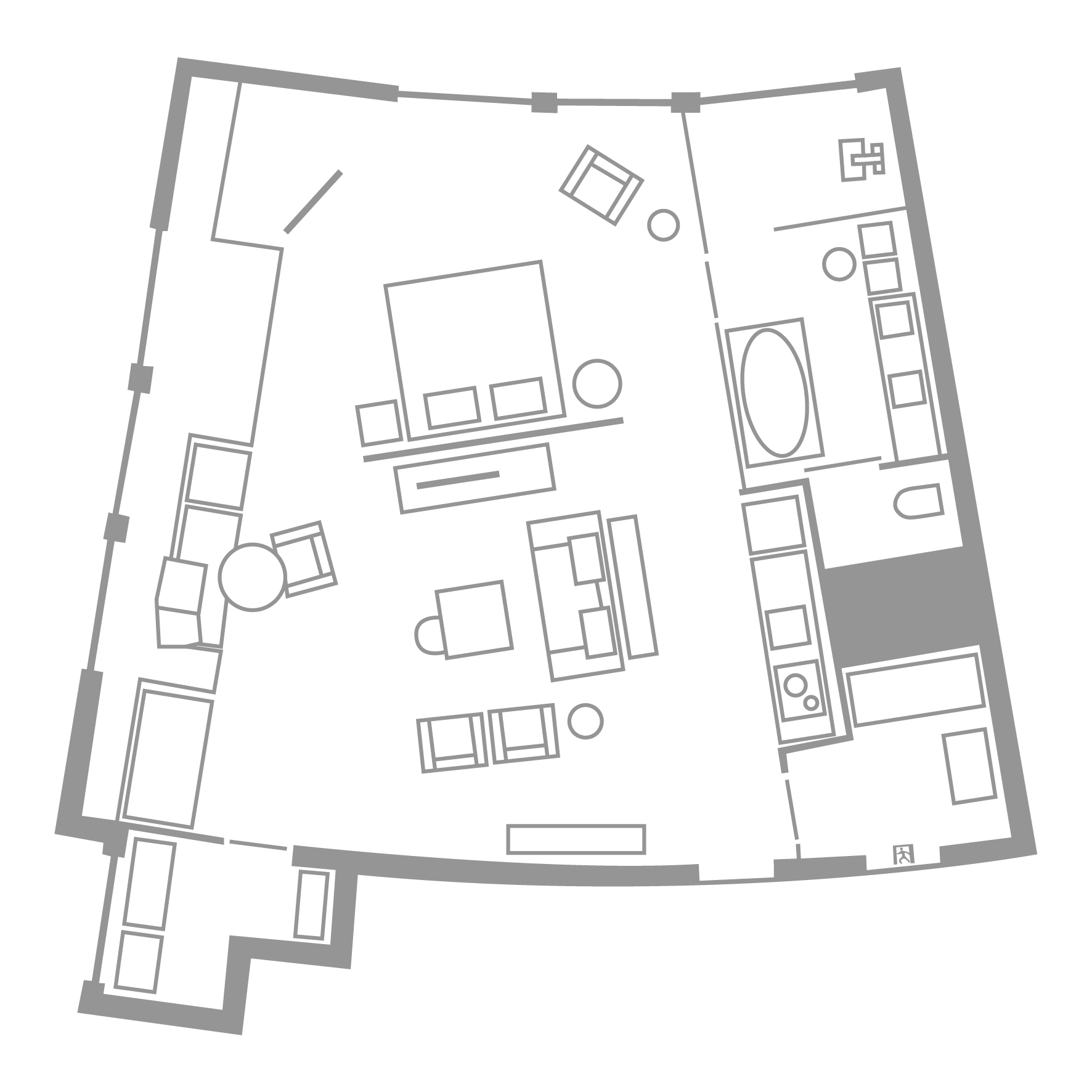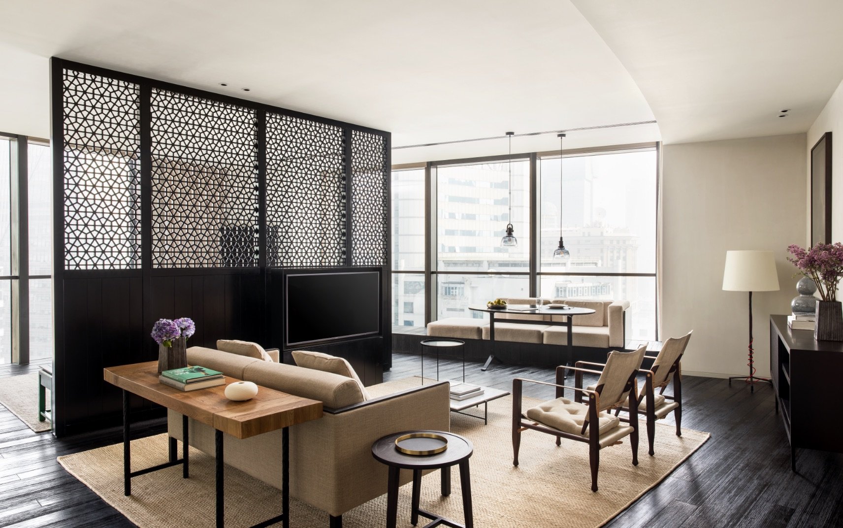 淩於城市上空的露台90平公寓是理想的單臥室公寓。設計摩登簡約,滿載中國工藝細節。這裏有明亮的廚房、私人洗衣房和超大面積的起居空間供你休閒娛樂。另外,浴室裏配置的沉浸式浴缸和雨淋一樣的頂噴式花灑,讓你在工作後盡情放鬆,獨享愜意時光。